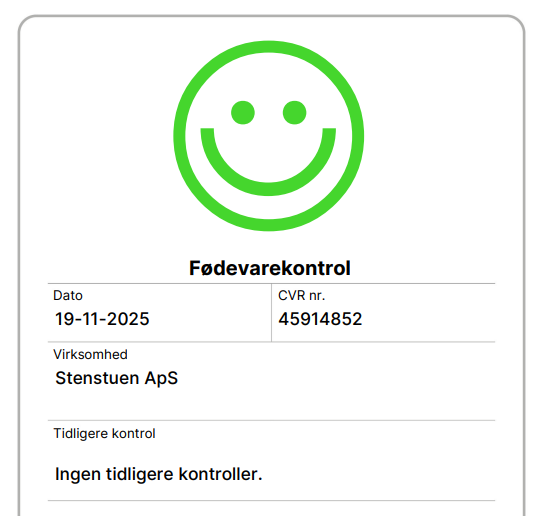Vi er stolte af at præsentere vores nyeste fødevarekontrol, hvor vi har opnået den bedste smiley.